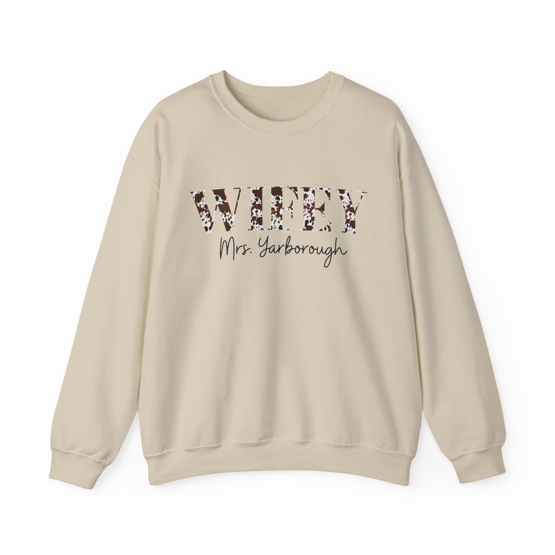 Cowhide Print Wifey Sweatshirt, Customizable.